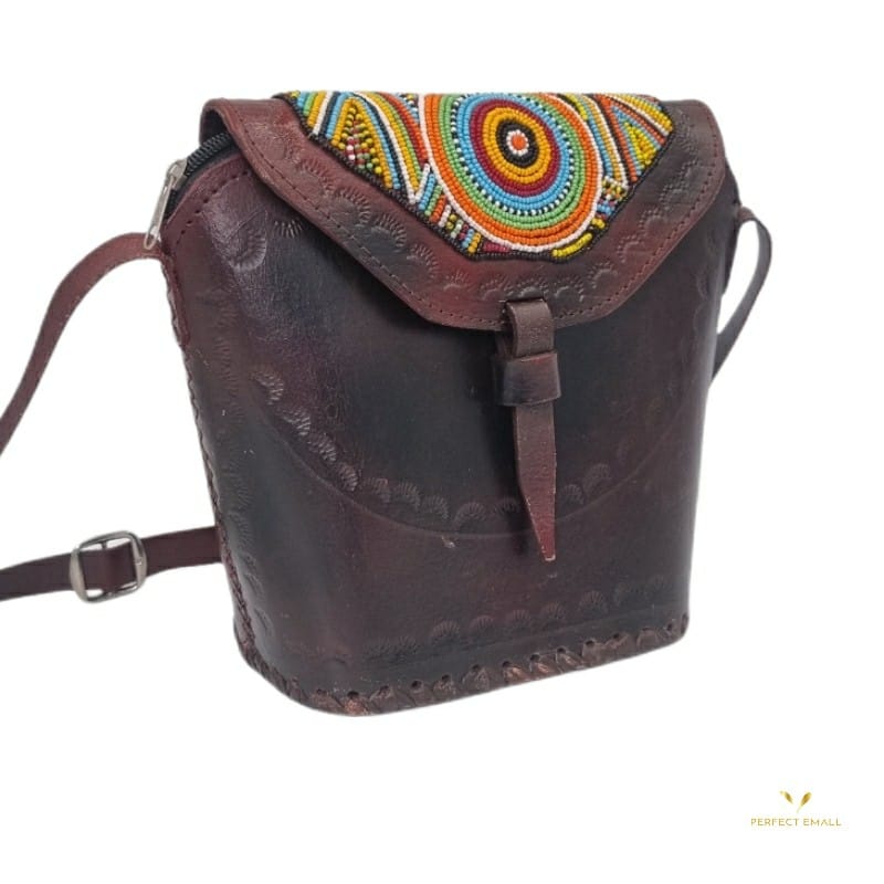 African Women Shoulder Leather and beaded Bag, Leather Handle Fr 39,000