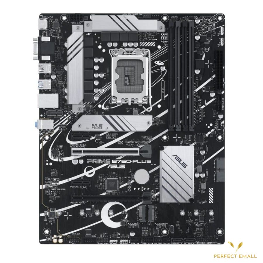 The ASUS PRIME B760-PLUS is a versatile and reliable ATX motherboard built for Intel 13th and 12th Gen processors with the LGA1700 socket. Featuring DDR5 memory support, PCIe 5.0 for GPUs, and multiple M.2 slots, this motherboard is an excellent choice for professionals, creators, and everyday users who need stability and future-ready performance.
