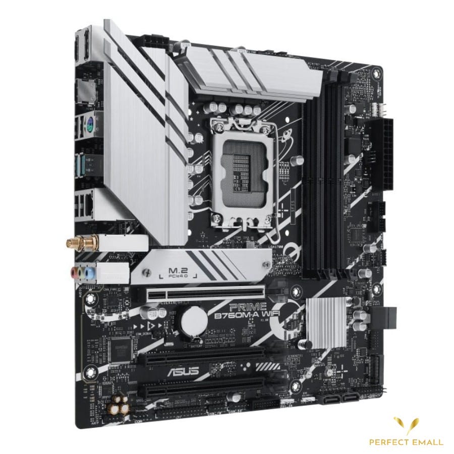 The ASUS PRIME B760M-A WIFI is a compact yet powerful micro-ATX motherboard designed for Intel 13th and 12th Gen processors with the LGA1700 socket. Combining affordability with premium features, it supports DDR5 memory, PCIe 5.0 graphics, and dual M.2 PCIe 4.0 slots for fast storage and smooth performance.