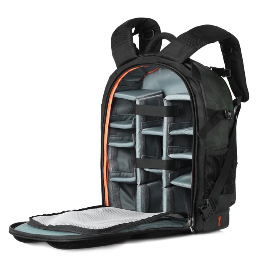 Capacity: 1 DSLR/mirrorless + 2–3 lenses + accessories